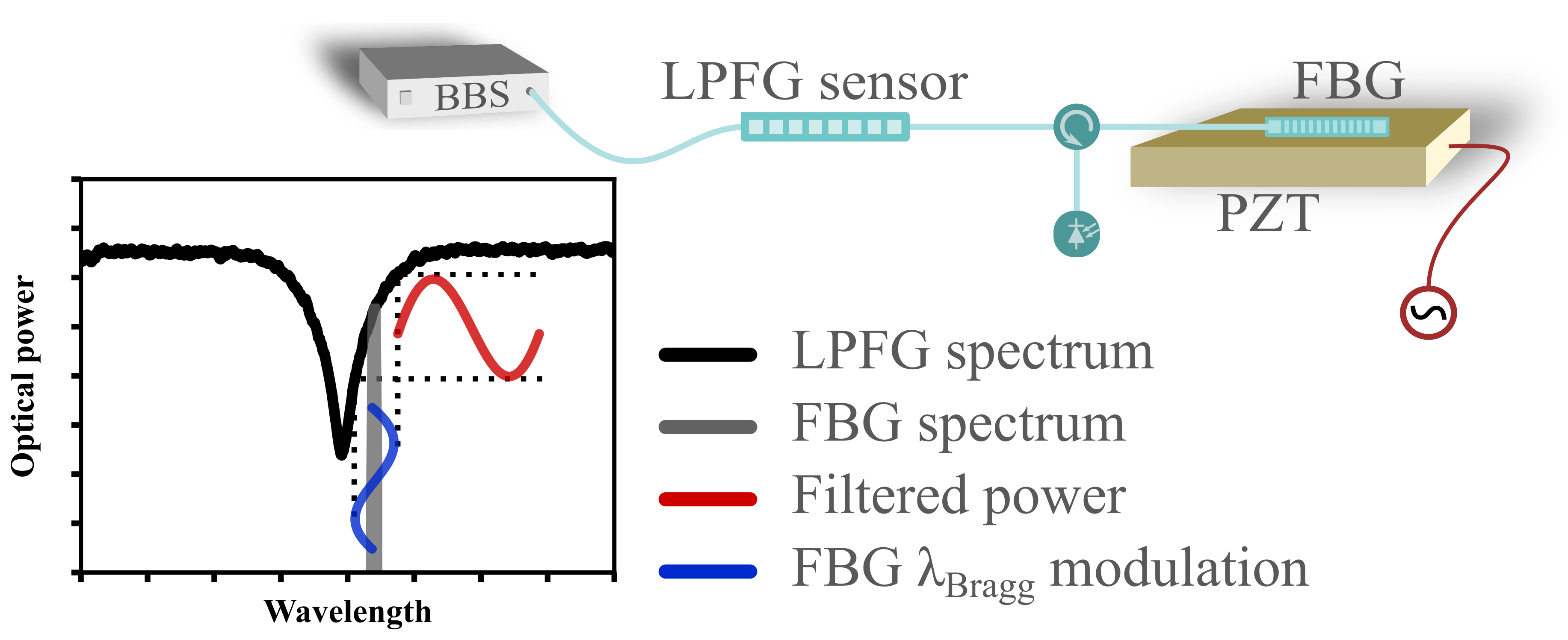 Citação recomendada: Guilherme Sampaio, Felipe Barino, Alexandre Santos, "Long-period fiber grating sensor interrogation with single strain modulated FBG and harmonic analysis." Optical Fiber Technology, 2022.